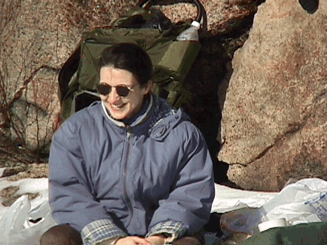 January 17, 1999 Valerie, happy to see the frozen lake with Ali's glasses